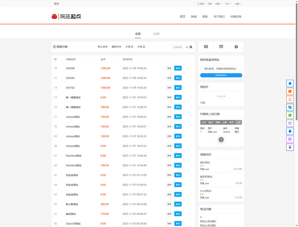 本插件可用于调查问卷任务的积分奖励站点运营,基于本系统接入、管理第三方拼平台渠道的调查问卷项目