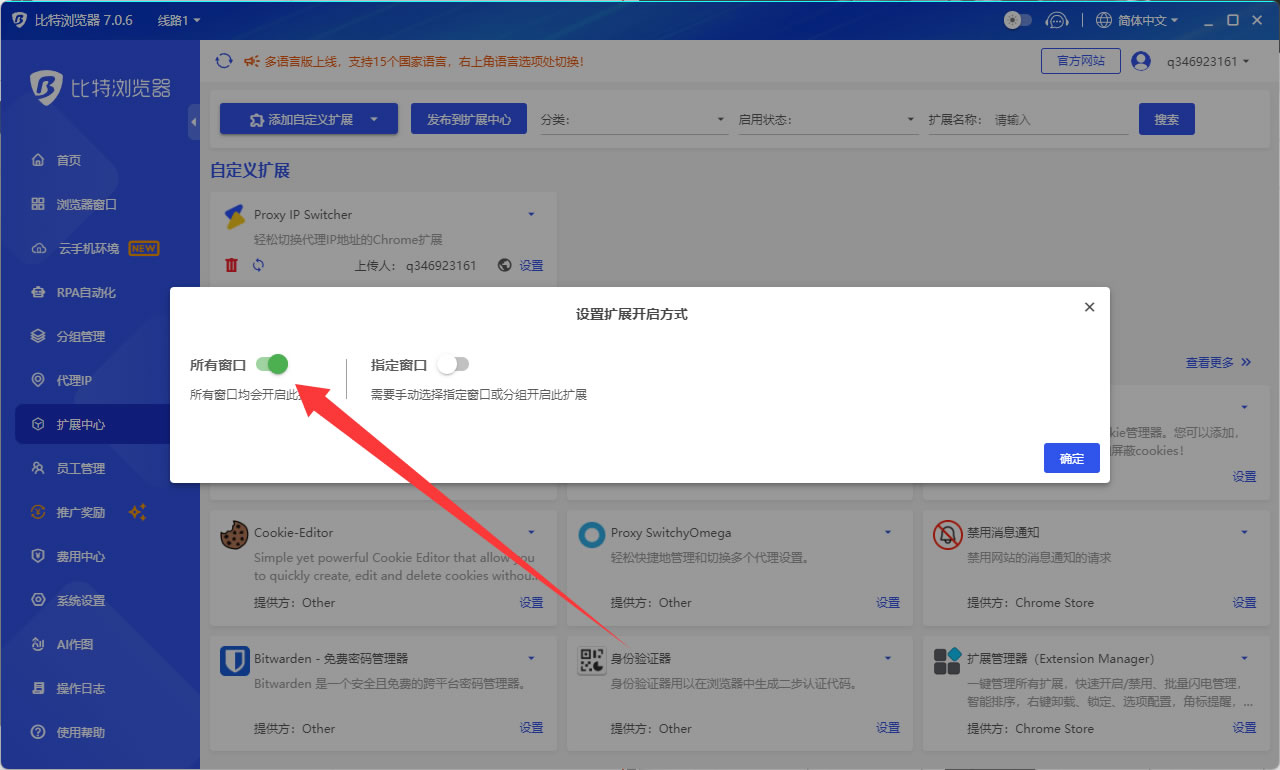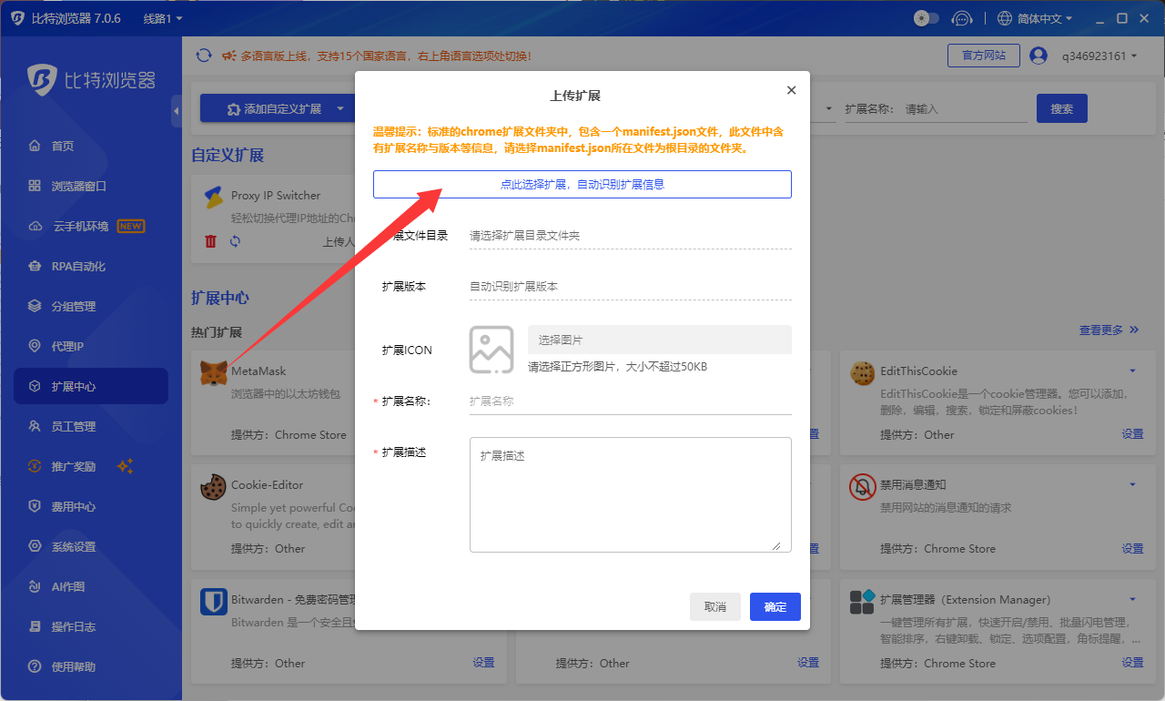 比特浏览器自动加载插件教程