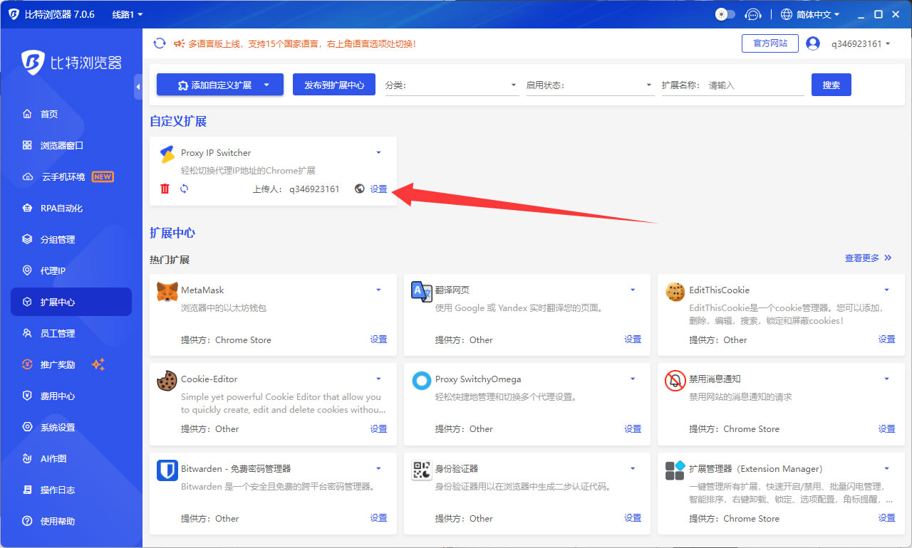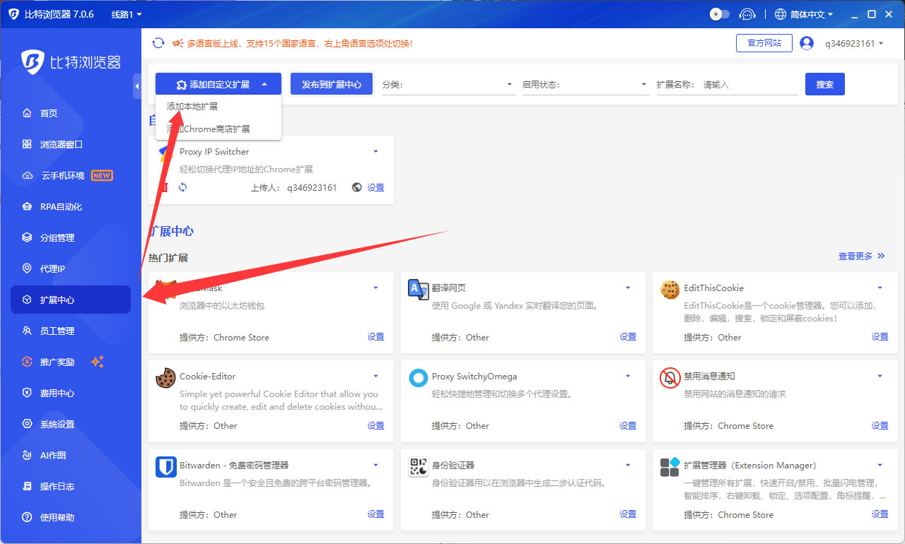 比特浏览器自动加载插件教程